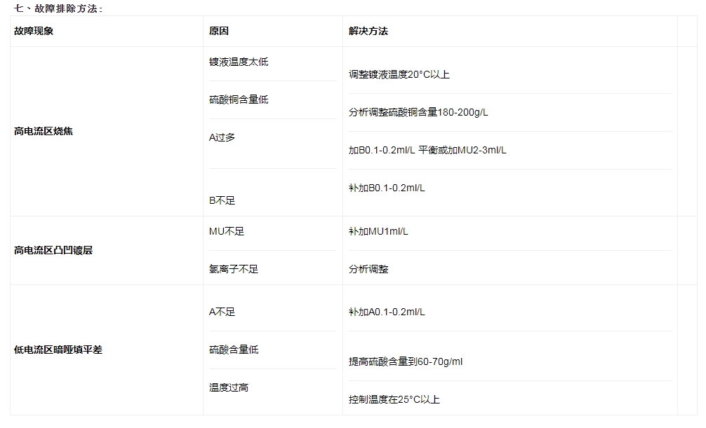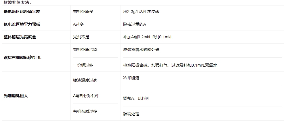 7、按上表加入适量的滚镀酸铜光亮剂910-B添加剂搅拌均匀,电解2-4安培小时/升后,便可正式生产。